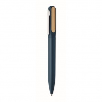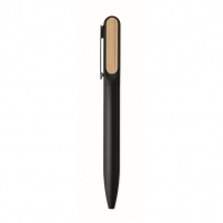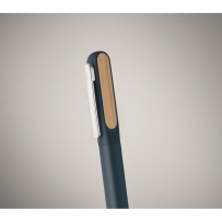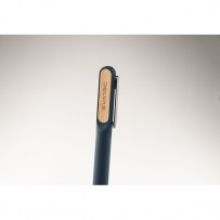 Stylo-bille twist avec corps en aluminium recyclé, partie twist en ABS recyclé et clip en métal avec détails en bambou. Encre bleue.