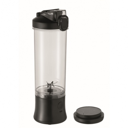 Przenośny blender z PCTG z pokrywką z PP, dodatkową pokrywką do napojów i uchwytem. Silnik o prędkości 18 000 obr./min, akumulator o pojemności 1200 mAh oraz kabel typu C do USB-A. Pojemność: 600 ml.