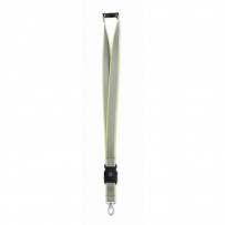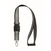 Reflective RPET polyester lanyard with 2.5 cm strap, metal hook, detachable PP buckle and safety breakaway. For promotional use only.