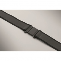 Odblaskowa smycz poliestrowa RPET z 2,5 cm paskiem, metalowym karabińczykiem, odpinaną klamrą PP i bezpiecznym karabińczykiem. Wyłącznie do użytku promocyjnego.