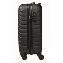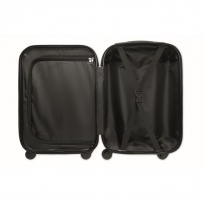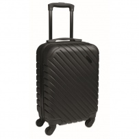 18 inch hard-shell trolley in ABS. 1 main compartment and inner compartment. Includes a security lock. Rides on 4 wheels.