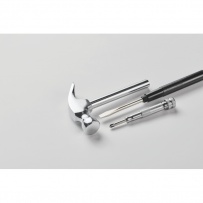 Młotek i wkrętak ze stali węglowej. Zawiera 4 wkrętaki zintegrowane z uchwytem.